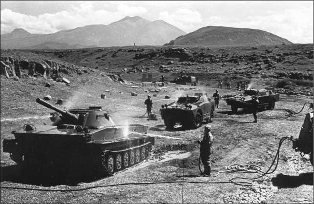 Дезактивация и дегазация боевых машин во время учений. 1966 год.