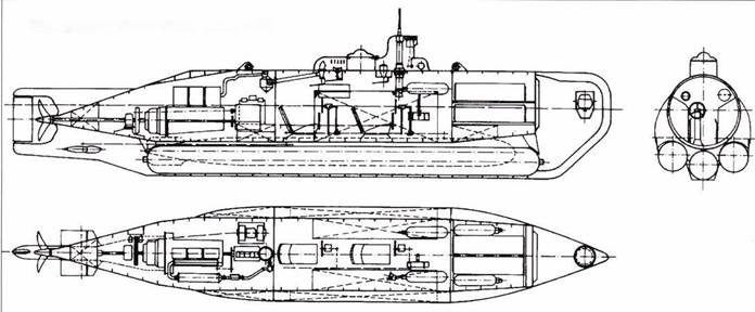Дополнительно лодку оснастили электродвигателем мощностью 25 кВт, который позволял лодке развить скорость 6 уз. Вооружение лодки состояло из четырех торпед, расположенных между стенкой прочного корпуса и внешней обшивкой. Поскольку лодка предназначалась для длительных походов, в центральном посту имелось два спальных места, отгороженный туалет и даже камбуз. Аккумуляторная батарея находилась под полом центрального поста. Запас топлива 6,7 т.