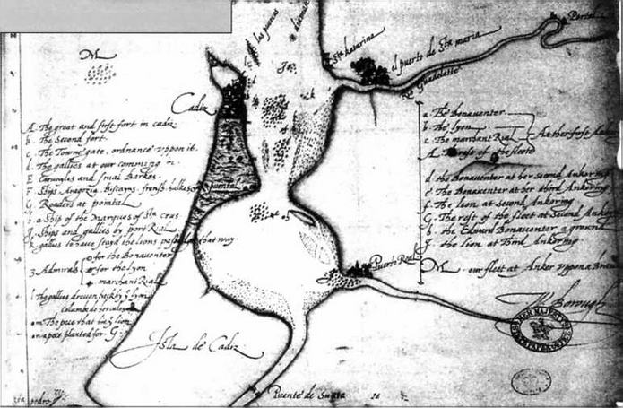 В ночь на 29 апреля Дрейк оставил на левом траверсе городок Рота и вошел в Кадисскую бухту.