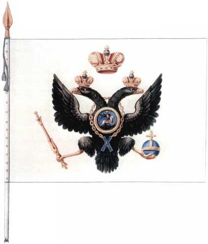 Белое полковое знамя образца 1730/1733 г. 1-го и 2-го морских полков. Компьютерная графика В.И. Изъюрова.