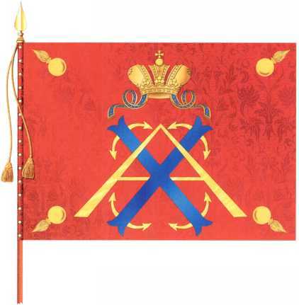 Цветное ротное знамя образца 1733 г. для рот 1-го и 2-го морских полков. Компьютерная графика В.А. Передерия. Реконструкция О.Г. Леонова.
