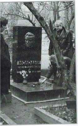 Сергей (блондин справа) и группа комсомольцев возлагают цветы на могилу Конона Молодого, известного советского нелегала КГБ, выкравшего в 1950-х годах ядерные секреты США.