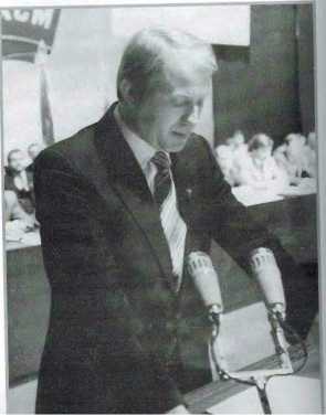 Сергей, секретарь комсомольской организации Первого Главного Управления КГБ (разведка), выступает на ежегодной комсомольской конференции на Лубянке, Москва, 1988 г.