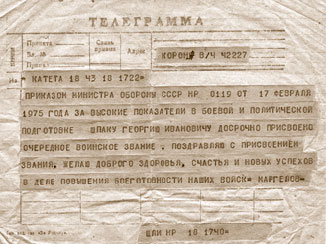 Предыдущее воинское звание присвоено: 16 сентября 1980 г. приказом МО СССР № 0950