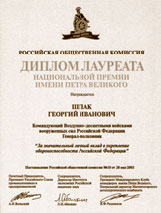 Образованность и патриотичность Г. И. Шпака признаны и отмечены на самом высоком уровне