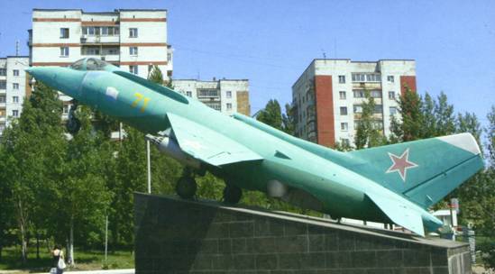 Самолет вертикального взлета и посадки Як-38М перед входом в Парк победы г. Саратов