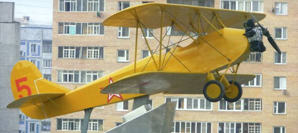 Памятник самолету По-2 в подмосковных Мытищах. 2008 г.