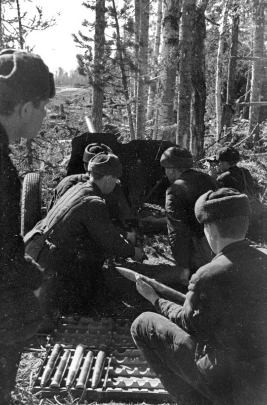 Приехали, сразу проверяли точку прицеливания. Для этого на срезе ствола имелись четыре риски – вертикальная и горизонтальная. Через эти риски натягивали ниточки, ствол наводили на какую-нибудь крестообразную цель на расстоянии не ближе 500 метров, и потом совмещали с этой целью прицел. Если время было, обязательно смазывали подшипники колес солидолом, а то, если забудешь, его может заклинить. За этим строго следили. А так особого ухода за пушкой не требовалось. Затвор смазывали, но разборку не делали – это сложно. Бывало, что артмастера забирали орудия с изношенными стволами и привозили новые. Все.
