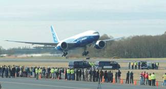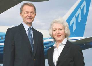 8 марта с аэродрома Пэйн (Paine), расположенного в г. Эверетт, штат Вашингтон (США), поднялся в небо первый экземпляр самолета Boeing 777-200LR Worldliner, располагающий на сегодня самой большой среди всех авиалайнеров в мире дальностью беспосадочного полета. Он способен перевозить 301 пассажира на расстояние до 17 450 км. Первый трехчасовой полет нового самолета успешно завершился на аэродроме компании фирмы «Боинг» в Сиэтле. Управлял им экипаж в составе старшего летчика-испытателя по программе Boeing 777-200LR Сюзанны Дарси-Ханнеман (Suzanna Darcy-Hennemann, на фото – справа) и старшего летчика-испытателя отделения коммерческих самолетов компании «Боинг» (Boeing Commercial Airplanes) по программе Boeing 777 Фрэнка Сантони (Frank Santoni, на фото – слева). Во время первого полета на самолете новой модификации была достигнута высота 4572 м и скорость около 500 км/ч. Программа испытаний Boeing 777-200LR, к которой скоро присоединится вторая опытная машина, будет включать около 500 ч испытательных полетов. Сертификация новой модели в органах Федерального управления гражданской авиации США и Европейского управления гражданской авиации намечена на четвертый квартал этого года, а уже с января 2006 г. должны начаться поставки самого дальнего в мире авиалайнера заказчикам.