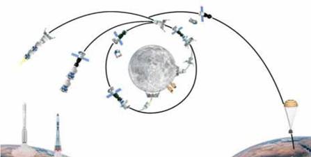 В конце концов. Луна рассматривается и как площадка на пути к Марсу, а это четвертое направление концепции «Энергии». Как рассказал Севастьянов, российские специалисты видят марсианский комплекс во многом похожим на орбитальную станцию. Он будет состоять из орбитального корабля (служебный модуль), двигательной установки с большими солнечными батареями и нового элемента – взлетно-по- садочного модуля. По мнению инженеров корпорации, до 2030 г. Россия технически в состоянии реализовать полет к Марсу без высадки, а затем и полет с десантированием на поверхность этой планеты.
