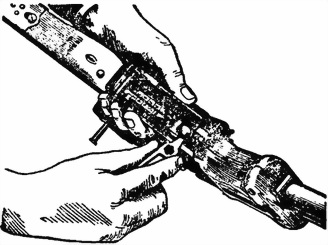 2) Отделить шомпол. Обхватить шомпол у кронштейна левой рукой и отжать его, затем правой рукой вынуть назад.