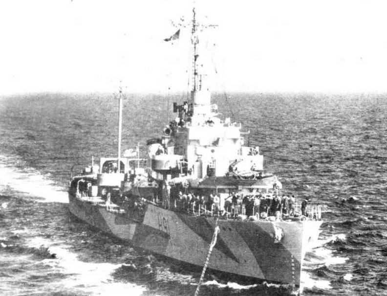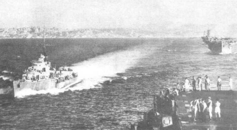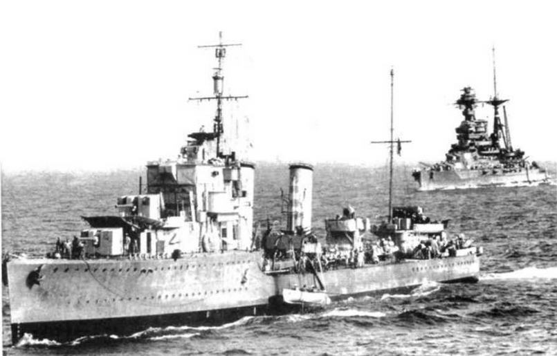 Эскадренный миноносец "Javelin" в ноябре 1942 г. (вверху и в центре). У гибнущего авианосца "Ark Royal" (внизу)