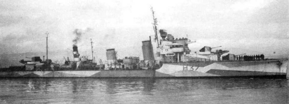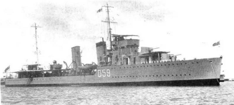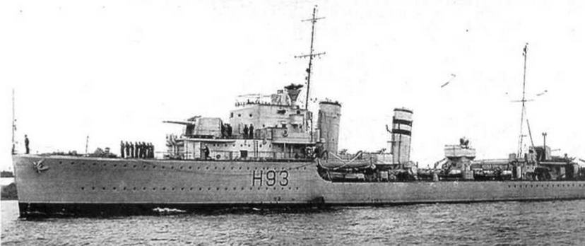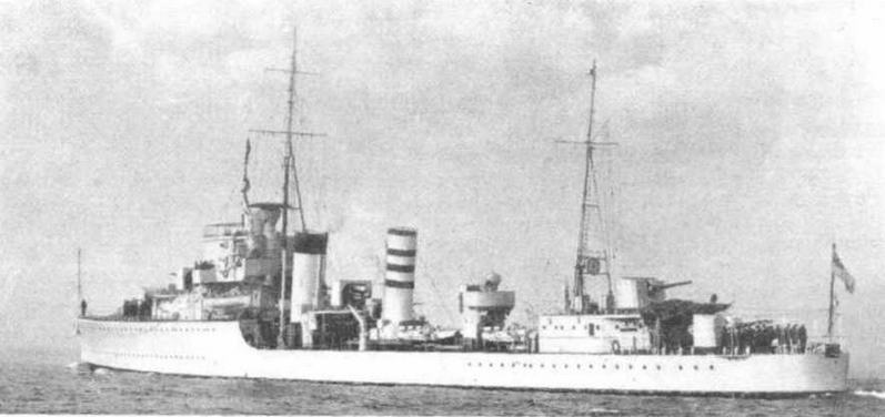 Эскадренные миноносцы (сверху вниз): "Greyhound", "Glowworm”, типа "G" и "Hereward"