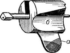 2. Винтовки с крановым затвором. Примером может служить система Верндля, бывшая на вооружении австрийской армии (рис. 84); ее затвор представлял цилиндр, вращавшийся на оси, параллельной оси канала ствола (рис. 85); у затвора имелись: боковая рукоять а для его вращения, желоб б вверху для вкладывания патрона и ударник, по которому бил курок.