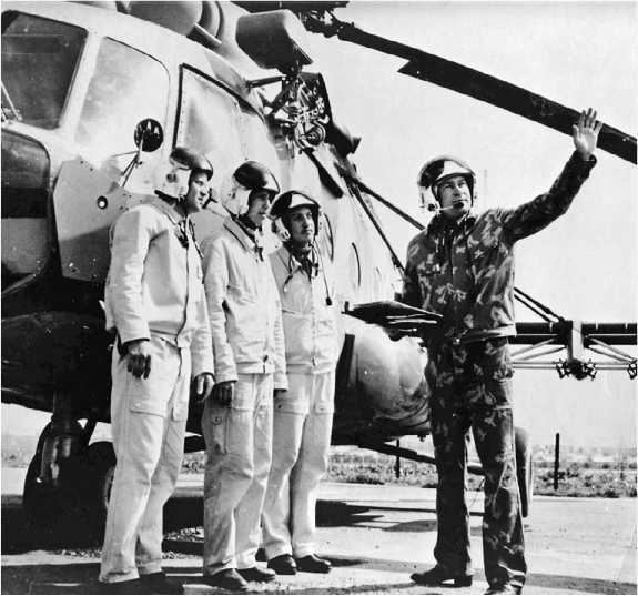 Экипаж майора Бусарова на фоне вертолета с афганскими опознавательными знаками