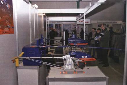 На стенде Московского вертолетного завода был представлен проект беспилотного многоцелевого комплекса Ми-34БП. Его назначение — обзор земной поверхности и передача на землю телевизионного или тепловизионного изображения, химическая и радиационная разведка, транспортировка грузов весом до 300 кг. На вертолете может быть установлено любое специальное оборудование. Взлетная масса Ми-34БП — 1450 кг, максимальная скорость — 225 км/ч, практический потолок при полетной массе 1350 кг — 3500 м, при полетной массе 1280 кг — 4000 м.