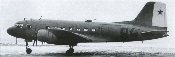 Один из прототипов военно-транспортного самолета Ил-14Т с опытной оборонительной установкой