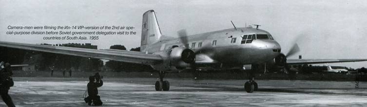 Советские ВВС стали получать Ил-14 в 1955 г., когда во 2-ю АКДОН поступили 10 «салонов», предназначенных для транспортного обеспечения высших органов власти страны. Хотя в том же году эти задачи передали Аэрофлоту, однако первые лица СССР нередко продолжали летать на самолетах дивизии.