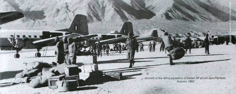 В 1961 г. Индия закупила 24 Ил-14, из них 14 поступили на вооружение 42-й эскадрильи, которой в следующем году довелось принять участие в войне с Китаем в Гималаях. За время конфликта, с августа по ноябрь, эта часть занималась доставкой грузов и личного состава в сектор Ладакх. Самолеты либо приземлялись на аэродром Лех, либо производилась парашютная выброска грузов прямо на позиции своих войск. Надо сказать, что Лех стал наиболее высокогорным аэродромом, на который летали Ил-14.