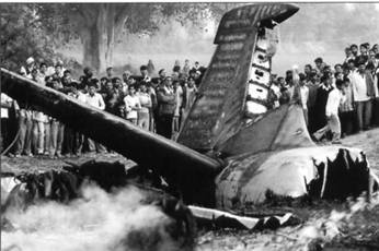 Обломки «Канберры», разбившейся в районе авиабазы Агра 19 декабря 2005 г. Справа – подвеска 454-кг бомбы
