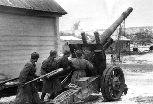152-мм пушка-гаубица МЛ-20 на огневой позиции. Зима 1943 года.