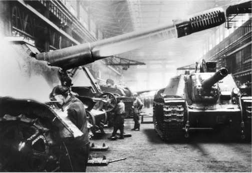 Сборка самоходных установок СУ-152 в цеху Челябинского Кировского завода. 1943 год.