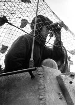 Майор Санковский ведет наблюдение за противником.