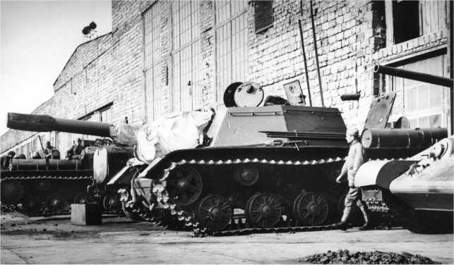 Корпус СУ-152 в сборочном цеху ЧКЗ, октябрь 1943 года.
