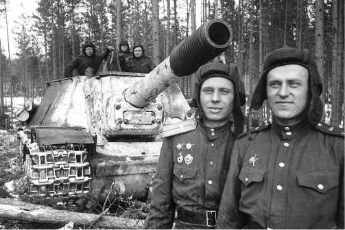 Командир СУ-152 лейтенант Н. Сучков и техник-лейтенант В. Максимов. 1944 год.