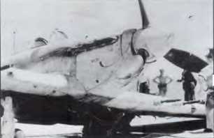 "Си Харрикейн" IIС, подломивший шасси на овианосце "Найрана". Месяцем раньше – 26 мая 1944 г – на этом самолете и другом таком же были одержаны последние победы «Харрикейнов» в войне – сбита пара разведчиков Ju 290 над Бискайским заливом