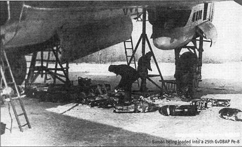 Загрузка бомб в Пе-8 25 ГвДБАП