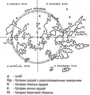 Отразив советские налеты в июне 1941 г., финны укрепляли свою ПВО в течение двух с половиной лет. Подобно противовоздушной обороне Москвы, Берлина или Лондона, управление ПВО Хельсинки было централизованным. Руководил ей командир 1-го зенитного артиллерийского полка полковник П. Йокипалтио, подчинявшийся командующему ПВО страны полковнику Пеуре. Только при особо мощном налете командир давал какому-либо дивизиону свободу на ведение самостоятельных действий. Сам Йокипалтио считал подобную организацию вынужденной мерой, учитывая ограниченное число зенитных батарей и неполную комплектность некоторых из них. [10*]