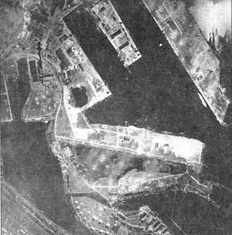 Для сравнения – снимок Пилау, сделанный через год, ночью 9 апреля 1945 г.