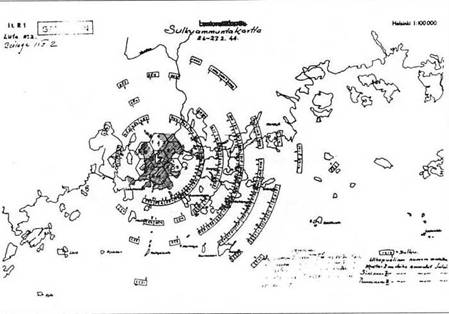 Город Хельсинки (Гельсингфорс) был основан в 1550 г. Столица Финляндии располагается на одной из кос, врезающихся в Финский залив. Сам город к 1944 г. занимал территорию с характерными размерами примерно б на 8 км без учета небольших пригородов и имел почти правильное прямоугольное расположение улиц. Население составляло около 300 тыс. жителей. Относительная близость от неспокойной советско-финской границы вынудила финнов самым серьезным образом заниматься вопросами ПВО.