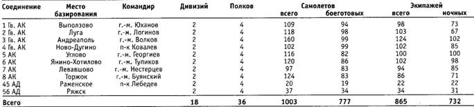 Таблица 1 дает представление о численном составе, командовании и базировании соединений АДД к началу января 1944 г.