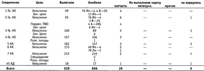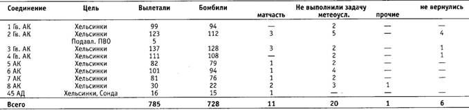 Благодаря четкой дисциплине, во время налета на Хельсинки подобных случаев удалось избежать. В ночь на 27 февраля АДД лишилось 9 бомбардировщиков, но все потери оказались боевыми – они не превысили одного процента от числа вылетевших машин АДД.