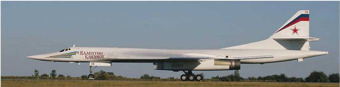 Внизу: во время июньских испытаний модернизированный Ту-160 еще не имел бортового номера, но уже получил имя собственное «Валентин Близнюк»