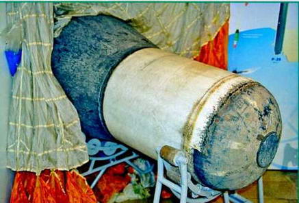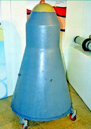 Моноблочная головная часть баллистической ракеты подводных лодок (БРПЛ) Р-27У облегченной конструкции (верхний снимок) была разработана в РФЯЦ-ВНИИТФ. Принята на вооружение в 1974 г. Серийное производство велось на Приборостроительном в г. Трехгорный. На нижних снимках головная часть с термоядерным зарядом мегатонного класса, предназначавшаяся для оснащения БРПЛ Р-27У комплекса Д-5У, а также для замены боевого оснащения баллистической ракеты Р-21 комплекса Д-4М. Изделие было снято с вооружения в 1990 г. После этого корпус головной части использовался в исследовательских спасаемых аппаратах "Спринт" и "Эфир".