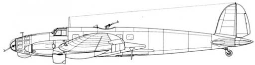Не-111е (Не-111V-5, D-APYS) - третий прототип бомбардировщика, первый полет самолет выполнил в начале зимы 1936 г. Длина самолета - 17,5 м, размах крыла -22,61 м, масса пустого 5400 кг, взлетная масса - 8209 кг.