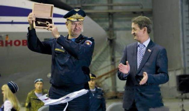 Действительно, 2 декабря в Ульяновске состоялась официальная передача самолета Ил-76МД-90А (RF-78653) Военнотранспортной авиации (ВТА), завод передал символический ключ командующему ВТА генерал-лейтенанту Владимиру Бенедиктову, а 3 декабря самолет перелетел в Иваново. Я побывал на церемонии встречи самолета в Иваново и был приятно поражен торжественностью момента и горящими глазами людей — ведь Военно-транспортная авиация не получала новых самолетов 23 года! Не секрет, что «крайний» Ил-76МД (еще ташкентского производства), был передан ВТА еще в 1992 г., и с тех пор ни одного нового самолета в ВТА не поступало. Ситуацию удалось переломить только после принятия в 2006 г. решения о переносе серийного производства Ил-76 из Ташкента в Ульяновск, где был организован выпуск новой, глубоко модернизированной версии самолета — Ил-76МД-90А, отличающегося от предшественника применением нового крыла из длинномерных панелей, современного бортового оборудования, новой силовой установки, имеющего большую грузоподъемность и дальность полета.