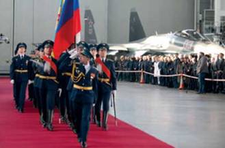 В церемонии приняли участие министр обороны России Сергей Шойгу, зам. министра обороны Юрий Борисов, главнокомандующий ВВС России генерал-лейтенант Виктор Бондарев, губернатор Хабаровского края Вячеслав Шпорт, президент ОАК Михаил Погосян, генеральный директор компании «Сухой» Игорь Озар, генеральный директор КнААЗ Александр Пекарш и др.