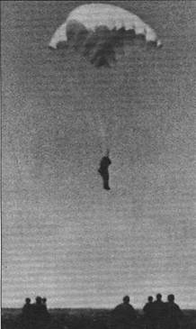 Мой самолет плюхнулся на брюхо как раз между линиями окопов. Я сразу же выскочил из кабины и кое-как замаскировался на засеянном поле, насколько это было возможно среди чахлых и затоптанных стеблей. Потихоньку стал отползать, стараясь не оставлять за собой следов. То и дело встречалось русское оружие и всякое снаряжение. К своему удивлению, среди всего этого я нашел книгу на немецком языке. Отполз я совсем недалеко, когда послышались негромкие голоса. Русские солдаты добрались до моего самолета. О чем они говорили, я, конечно, не понял, разобрал лишь слово «парашют». Его-то я предусмотрительно захватил с собой!
