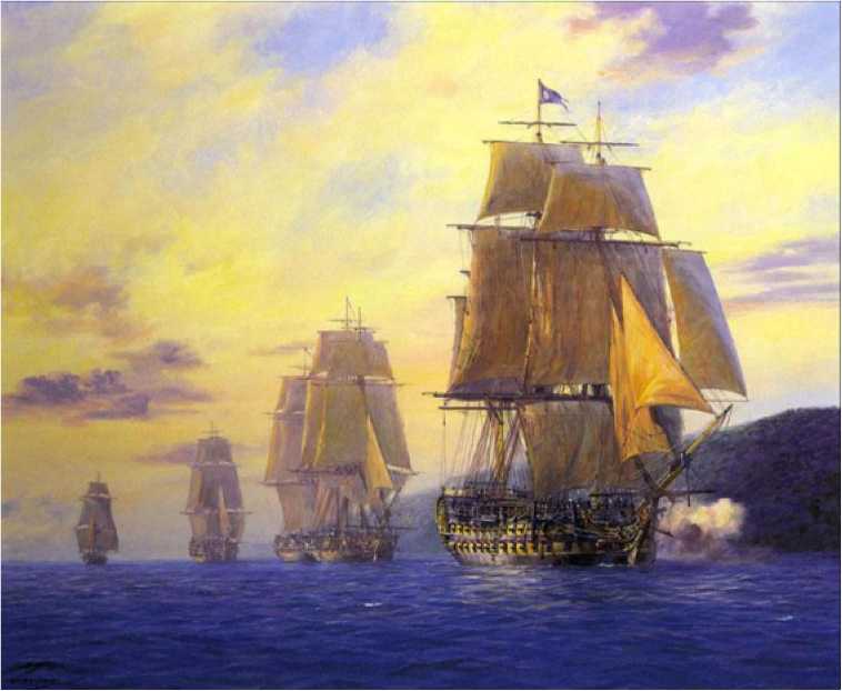 Корабль Нельсона «Агагемнон» во главе колонны. 1796 год
