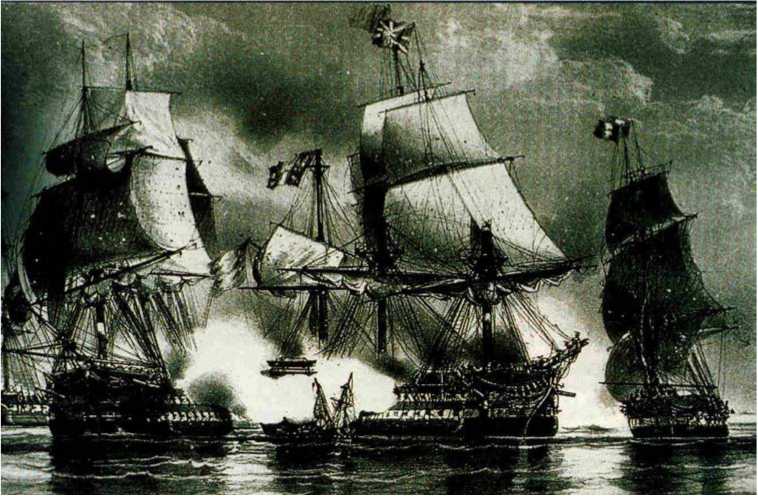 Сражение корабля «Агамемнон» (слева) с фрегатом «Ca Ira» 13 марта 1795.