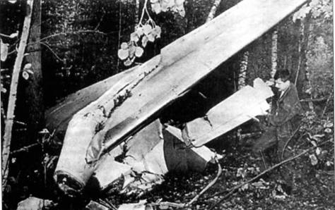 Обломки Ту-134 (борт RA-65760), потерпевшего катастрофу в результате столкновения с Ту-22МЗ. 9 сентября 1994 г.