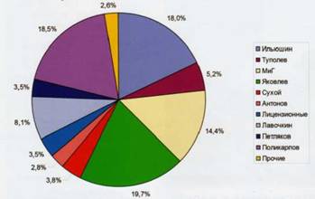 Самолетов В СССР/России % в СССР По лицензии Всего %, всего Антонов 133400 7.9% 45380 178780 9,8% Ильюшин 466912 27.6% 15661 482574 26,5% МиГ 270739 16.0% 46574 317314 17.4% Поликарпов 62149 3.7% 754 62902 3,5% Туполев 300585 17,8% 18625 319210 17,5% Яковлев 146074 8.6% 4928 151003 8,3% Прочие 309135 18.3% - 309135 17,0% Всего 1688994 - - 1820917 -Выводы