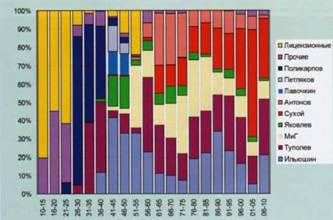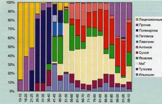 Таблица 7 Доля ведущих КБ в общем числе самолетов отечественной конструкции, штук