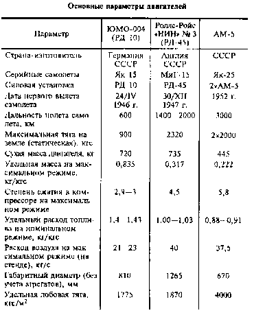 Создание и постановка на серийное производство в начале 50-х годов двигателей АМ-3, АМ-5, РД-9Б п их модификаций обеспечили создание современных самолетов. При этом надо заметить, что отечественные реактивные двигатели как по конструктивным схемам, лак и по развиваемой тяге не имели себе равных среди зарубежных двигателей.