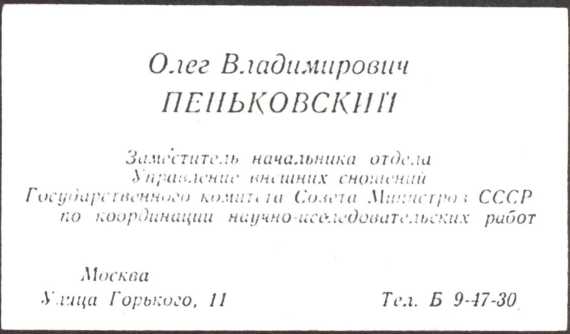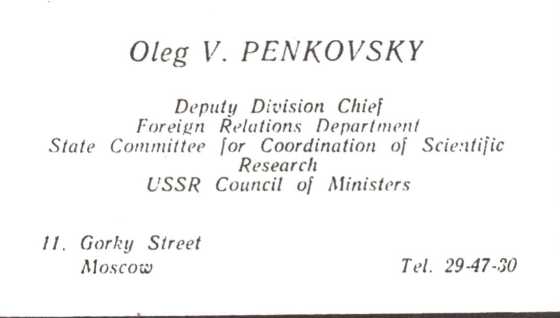 «Находясь в Париже, Пеньковский на явочных квартирах регулярно встречался с представителями английской и американской разведок. На этих встречах он сообщал им о заданиях московского начальства, которые ему предстояло выполнить во время пребывания в Париже, сообщал сведения о сотрудниках советского посольства во Франции, представлявших для западных спецслужб особый интерес, идентифицировал их на фотографиях, кратко характеризовал их, а на плане нашего посольского здания указывал, где размещаются их кабинеты. Кроме того, он идентифицировал по имеющимся в распоряжении иностранной разведки фотографиям личность различных советских граждан, представлявших интерес для иностранной разведки, и давал по ним важную информацию, изучал приемы разведработы иностранных спецслужб и получал от них задания: продолжать фотографировать секретные материалы; подобрать и подробно описать восемь — десять тайников в Москве для безличного контакта; устанавливать дружеские отношения с офицерами и сотрудниками Государственного комитета по координации научно-исследовательских работ с целью получать от них шпионскую информацию; используя связи с военнослужащими ракетных войск, собирать материалы о новой советской военной технике. Помимо этого, находясь в Париже, Пеньковский продолжал изучение шпионской радиотехники, которую ему обещали переслать в Москву через Винна или Джанет Эн Чизолм».