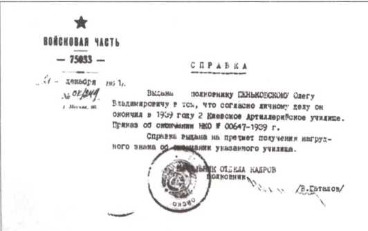 Справка, подтверждающая, что Пеньковский командируется во Францию руководителем группы советских представителей на советскую промышленную выставку в Париже